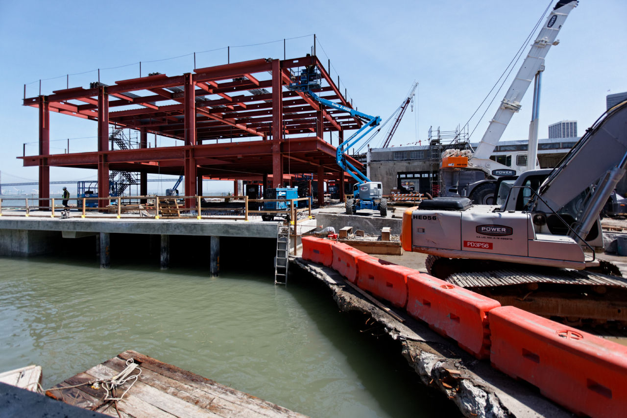 At the Exploratorium’s construction site: the existing pier deck between Pier 15 and 17 was evaluated, repaired, and upgraded as part of the structural scope of work. (Photo by Oliver Shay)