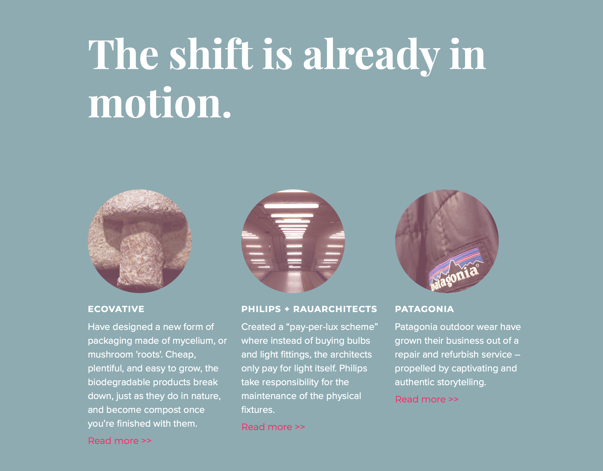 Now is the most exhilarating time to be an innovator. The next big thing in design is circular. What if you could redesign everything? The shift is already in motion. So, roll up your sleeves and get started. (Quote courtesy Circular Design Guide)