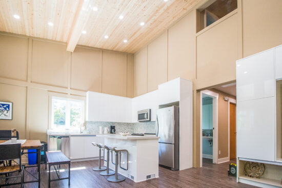 AYO Smart Home’s Pilot House is what stands out to many people. This house is built from magnesium oxide structural insulated panels (MgO SIPs). These panels sport connections that are extremely secure and airtight thus preventing heat loss or bacterial growth. In addition, they are significantly thicker and more durable than walls of traditional wood homes. By using MgO SIPs, the cost of the building foundation is also dramatically reduced because the magnesium oxide boards are approved for the use as partial foundation walls. This means that a simple gravel or cement pad is enough to accommodate this home. When it is time to move or take this home down, there is no issue, because MgO SIPs can easily be recycled or reused. In addition, during the deconstruction process, they do not produce highly toxic and foul-smelling hydrogen sulfide gas like traditional gypsum does.