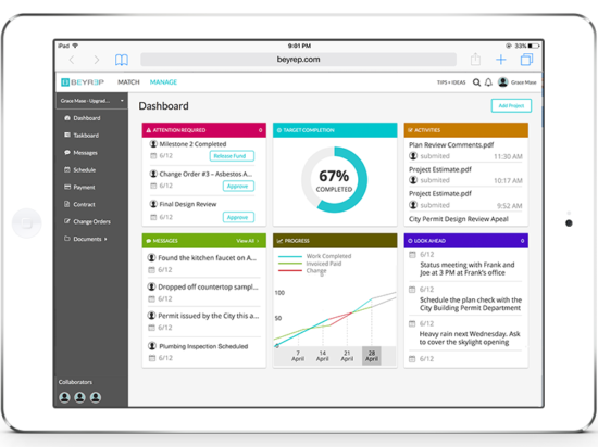 Currently in its Beta testing mode, Beyrep already has helped many homeowners succeed in managing their home improvement projects. It has simplified the process to connect homeowners with pros. Beyrep helped homeowners understand what decisions needed to be made and when, and provided them a dashboard to easily monitor progress. It has also given pros a complete electronic back-office to replace their traditional paper management methods. Most importantly, Beyrep holds both the homeowners and the pros accountable for all the decisions made in the projects.